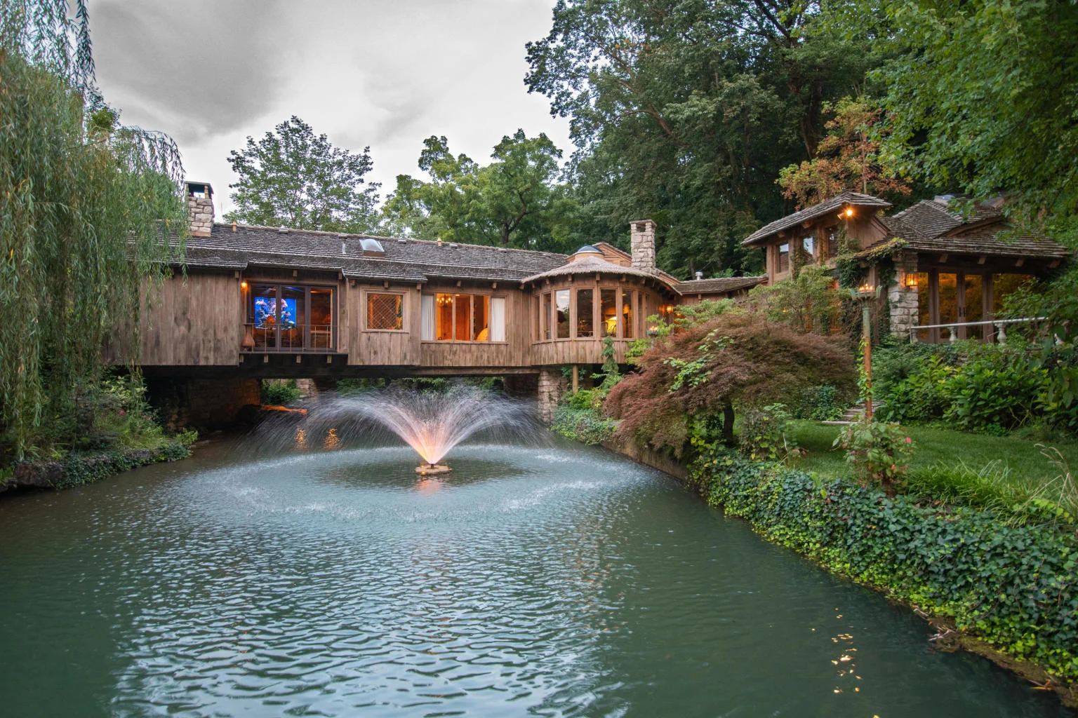 Masterfully designed around it's own environment, this uniquely built home is a celebrated property in Springfield, Missouri. Designed by the late Don Russell, this estate is nothing short of spectacular! The detail in this home is beyond what one can dream. The custom front doors sourced from Goa, India are circa 1820s. Pay close attention to the wood floors! There are over 550,000 mosaic pieces carefully assembled out of oak, walnut, and ebony including the 20,000 piece crocodile designed by Archetypal. The kitchen overlooks the spring-fed pond that runs throughout the property year round. The kitchen counter is made of 4 inch thick Carthage stone. Off the kitchen is a wine cellar with antique doors. The family room nothing short of amazing.